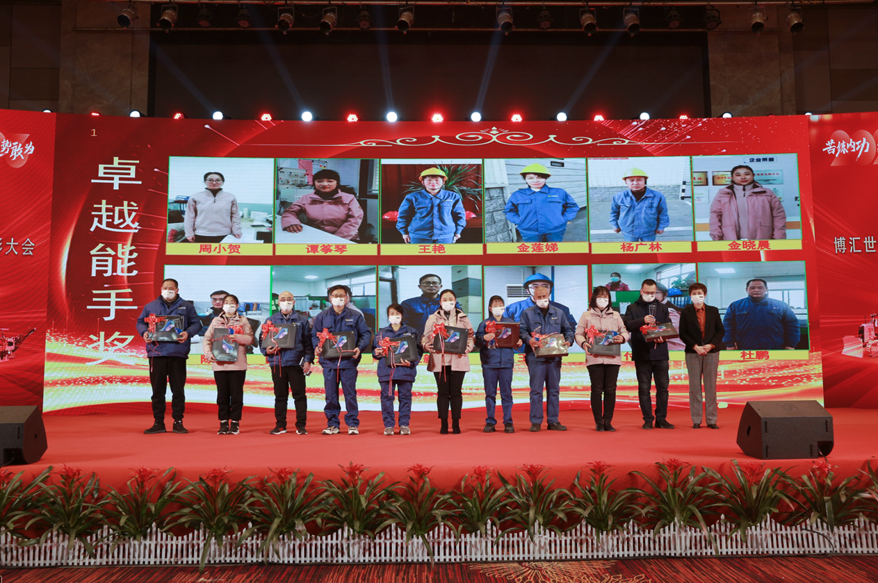 2023年1月17日下午,博匯世通在經(jīng)開區(qū)溫德姆酒店隆重召開二O二二年度“苦練內(nèi)功 逆勢敢為”先進表彰大會,參加表彰會的與會人員有:總經(jīng)理付子一、副總經(jīng)理李選舉、王衛(wèi)國、陶志田、王洪、人力資源總監(jiān)馬書琦、財務(wù)總監(jiān)李梅,全體中層管理干部、工段長、獲得榮譽稱號的所有先進員工、優(yōu)秀團隊代表、以及AB級員工們,共計300人。