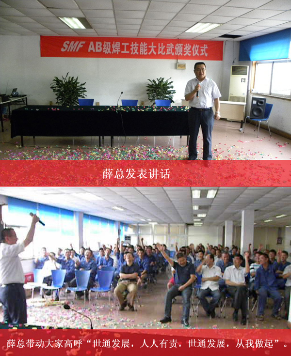 公司于7月13日成功舉辦了“A、B級焊工技能大賽”,經過緊張激烈的角逐,最終共有10名員工獲獎。為表彰優秀,激發員工的積極性,公司于8月8日舉行了“A、B級焊工技能大比武頒獎儀式”。這次焊接技能大賽的成功舉辦,不僅豐富了員工的生活,也充分彰顯了SMF的焊接實力。